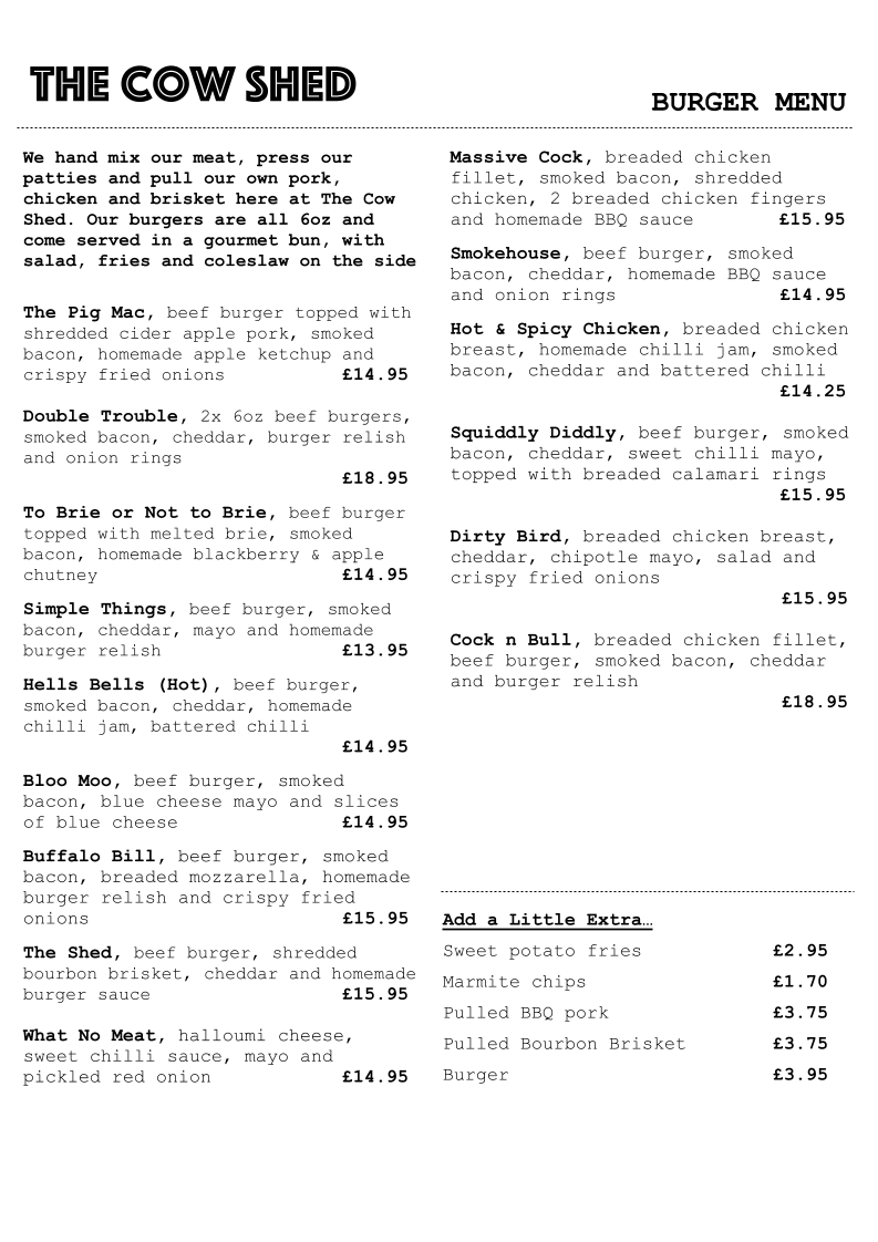 In summary, The Cow Shed in Brixham offers a memorable dining experience, with a menu full of flavorful options, exceptional service, and a commitment to quality ingredients. It’s an excellent choice for anyone looking to enjoy a well-rounded meal in a welcoming environment.